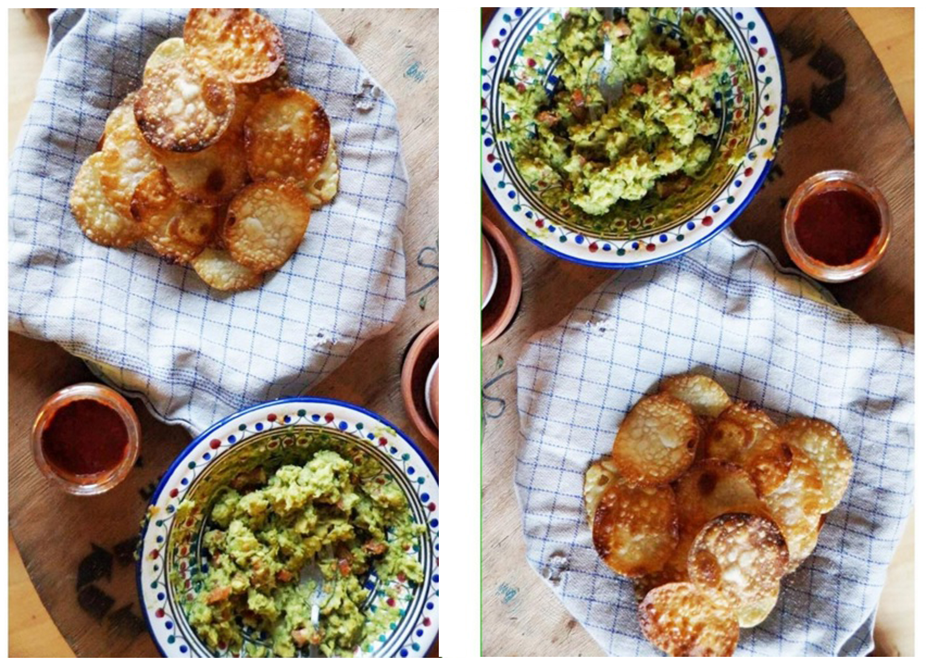 – Use a glass or ravioli cutter and cut your crisps in the desired shape.
