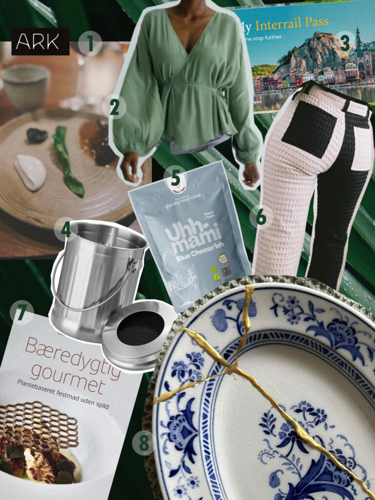 1. Ark tasting menu //2. Oh Seven Days top // 3. Interrail pass // 4. Pulito compost bucket // 5. Uhhmami boullion // 6. Aniela Parys trousers // 7. Gourmet cookbook // 8. Kintsugi kit